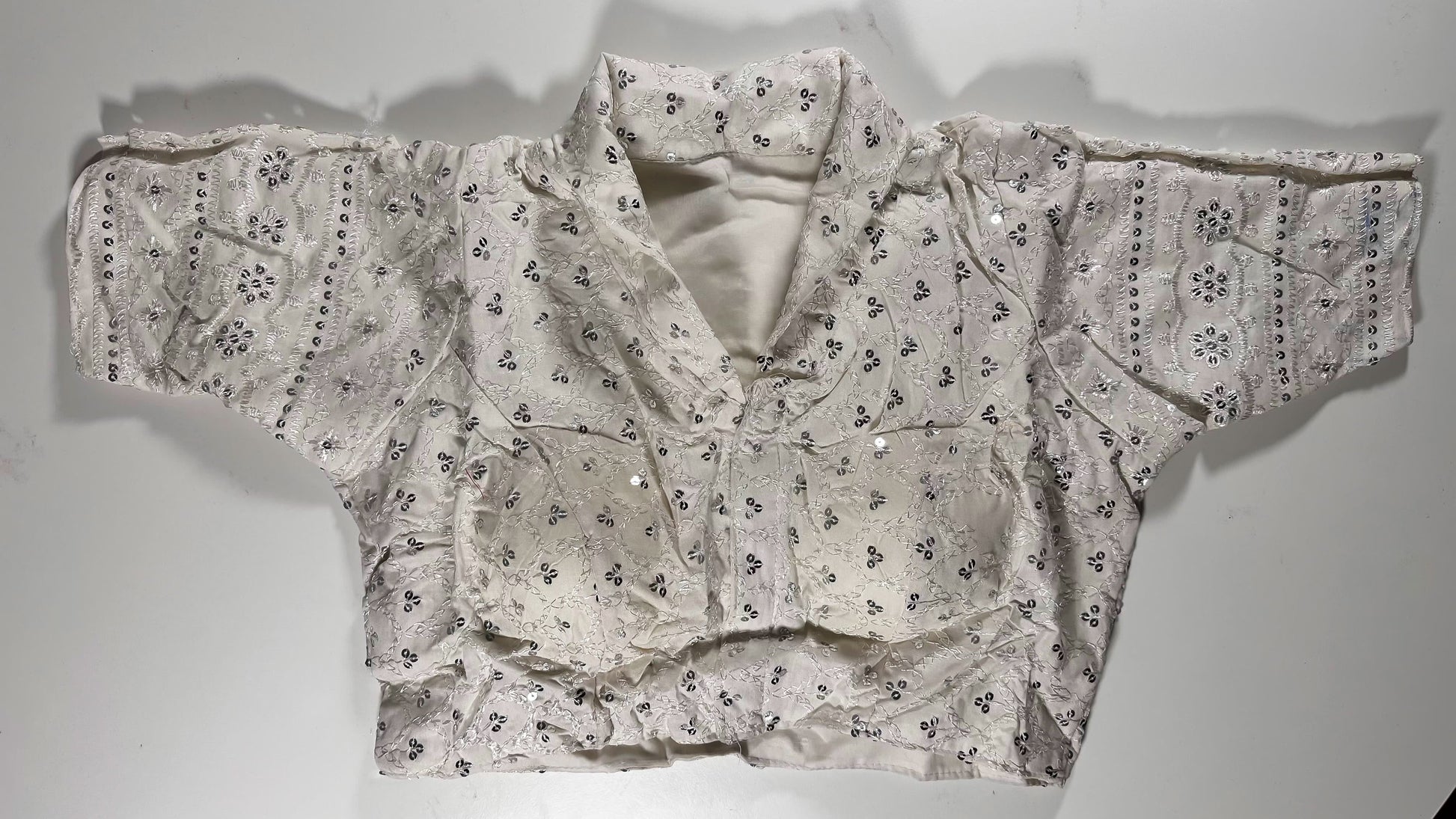Radiate sophistication with this stunning white saree blouse featuring all-over sequin and mirror work embellishments.