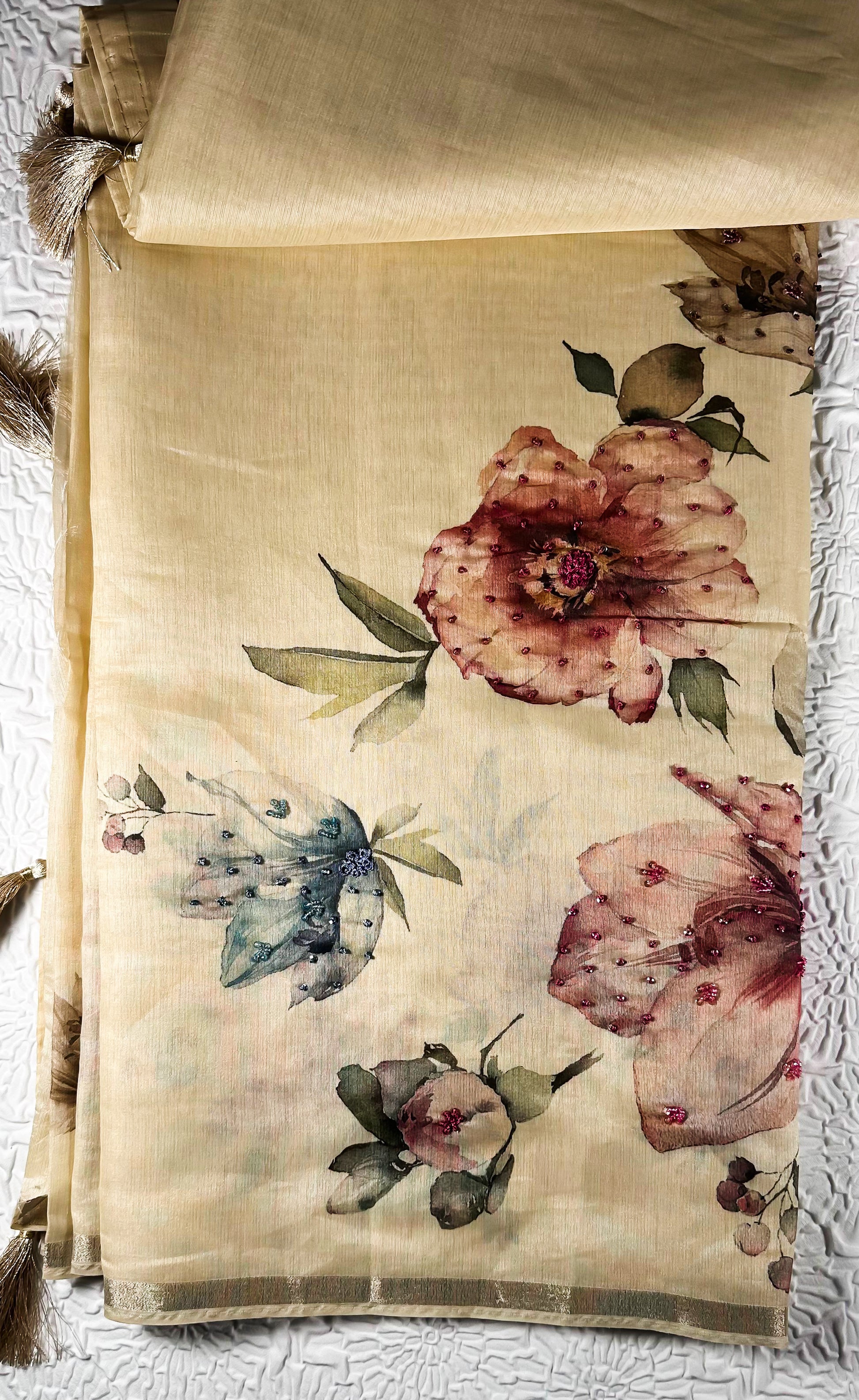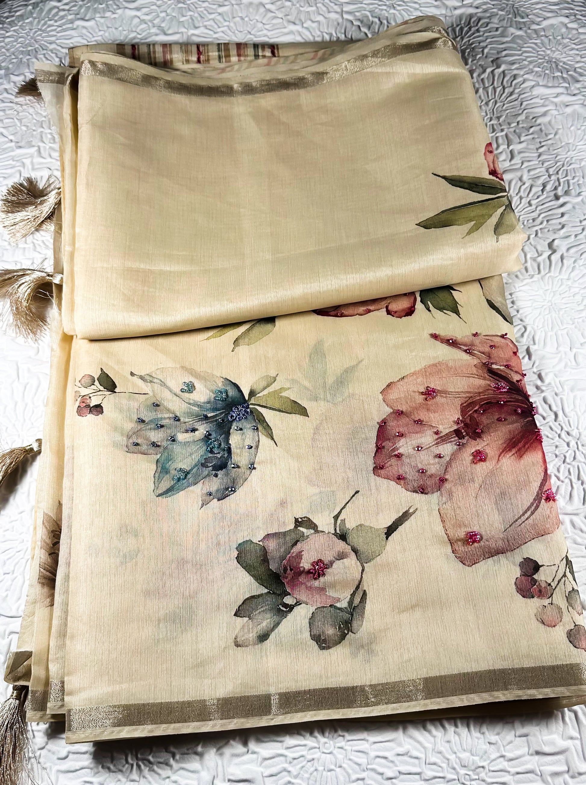 Soft Organza Saree with Malti Resham Embroidery & Tassel Pallu