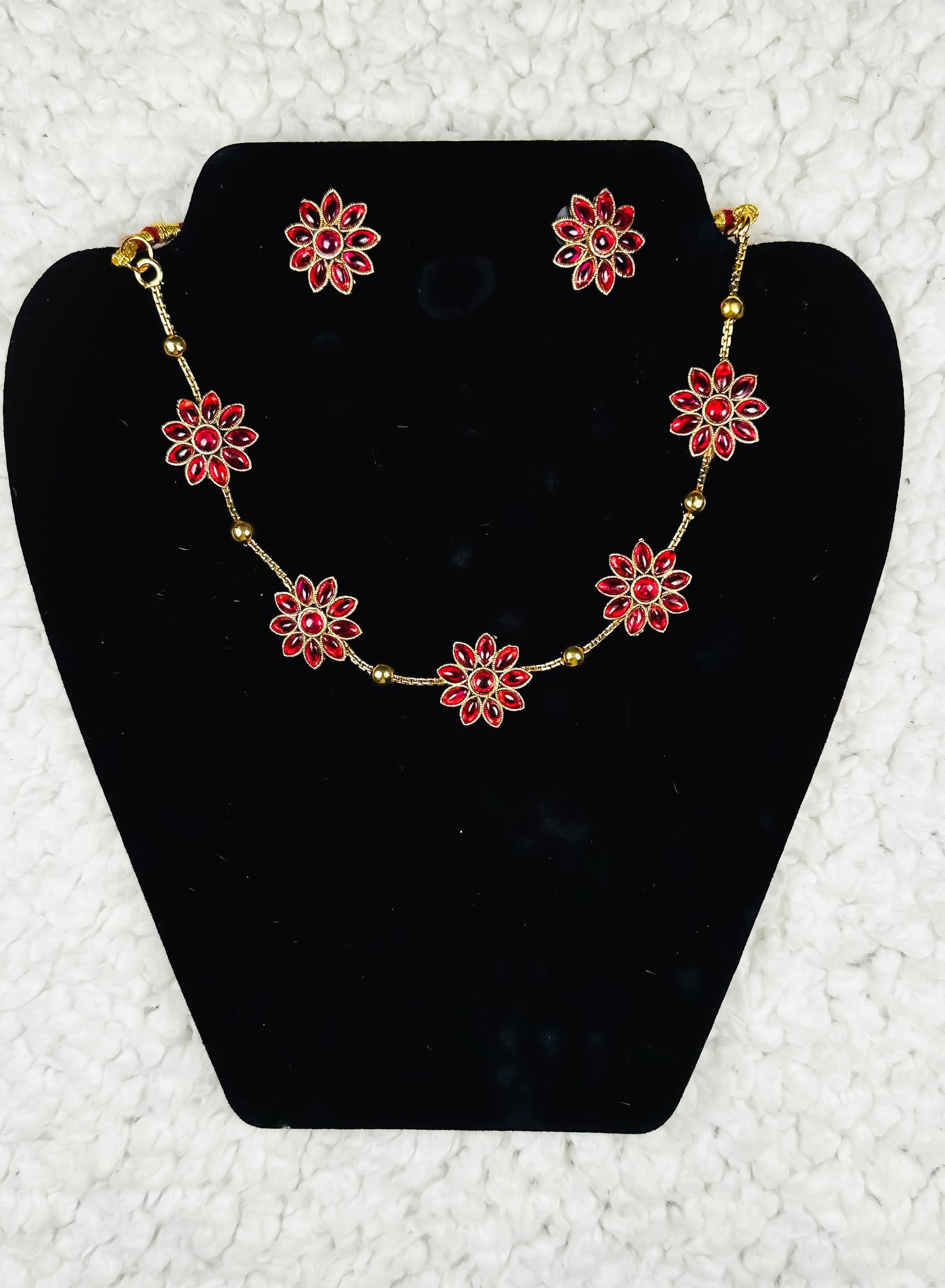 This feminine jewelry combines dainty floral stations with fine gold chain work, perfect for adding a touch of garden-fresh beauty to any outfit